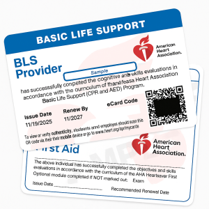 AHA BLS certification required for nurses, EMTs, CNAs, dental workers, etc.